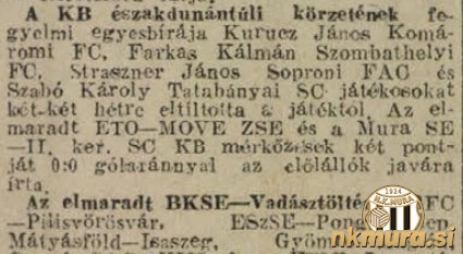 Prvo moštvo Mure ta vikend ni odigralo tekme, saj je II. kerület iz Györa vodstvo Mure obvestil, da ga zaradi težav s prevozom ne bo v Mursko Soboto. Vodstvo lige je kasneje določilo, da se tekma konča brez golov 0:0, zmaga in dve točki pa se pripišeta Muri.