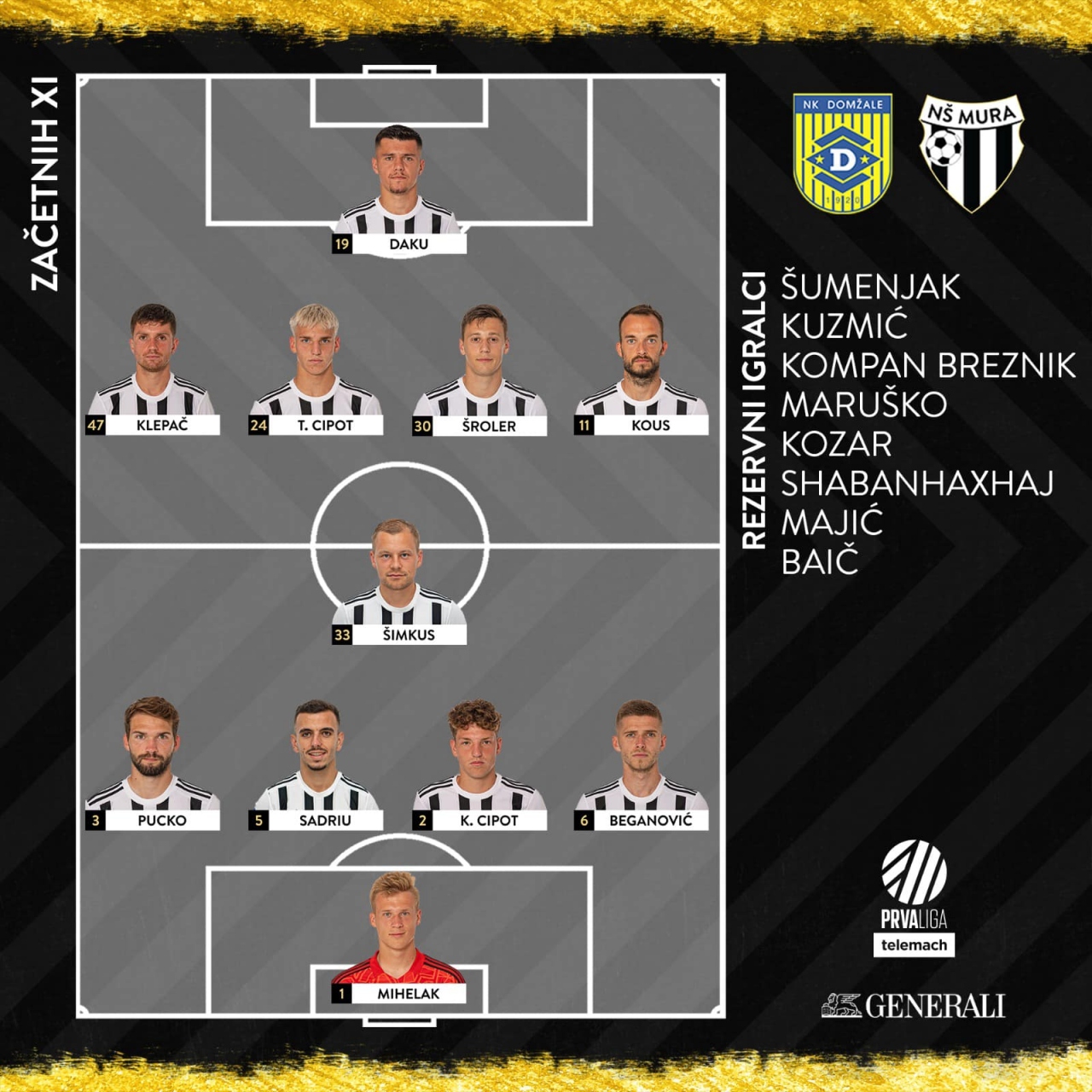 Mura: Mihelak, Pucko (od 46. Kuzmić), Sadriu (od 88. Baić), K. Cipot, Beganović, Šimkus (od 58. Maruško), Klepač, T. Cipot, Šroler (od 72. Shabanhaxhaj), Kous, Daku. Trener: Damir Čontala.