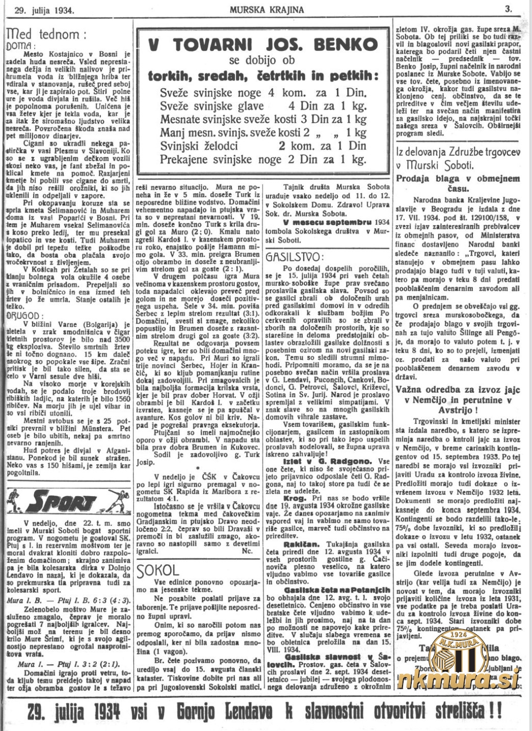 Pri Muri je nastopilo nekaj novincev - Milan Šerbec, Ivan Hojer in Ludvik Krančič. Vsi so se Muri pridružili v spomladanskem delu sezone 1933/1934. Pri Muri se je najbolj izkazal krilni igralec Nikolaj Horvat. Ivo Kardoš je v začetku opravljal obrambne naloge izvrstno, nato pa nekoliko popustil. Več bi lahko storili tudi napadalci, vendar niso znali izkoristiti svojih priložnosti.
