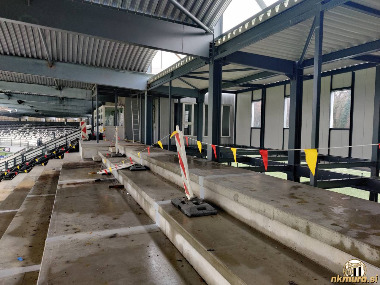 Na Fazaneriji se pospešeno nadaljujejo dela v zvezi z gradnjo nove tribune. V teh dneh poteka montaža VIP prostorov za severozahodno tribuno. Dela so že precej daleč.