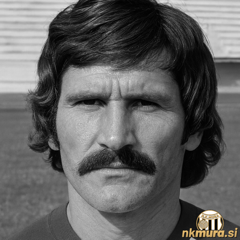 Ilija Ivković v dresu in trenirki Mure v sezoni 1973/74. Fotografija je bila računalniško izboljšana. Avtorske pravice: nkmura.si Foto: arhiv Draga Posavca