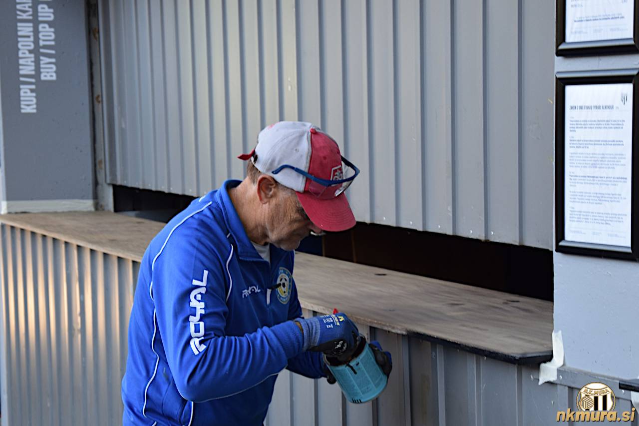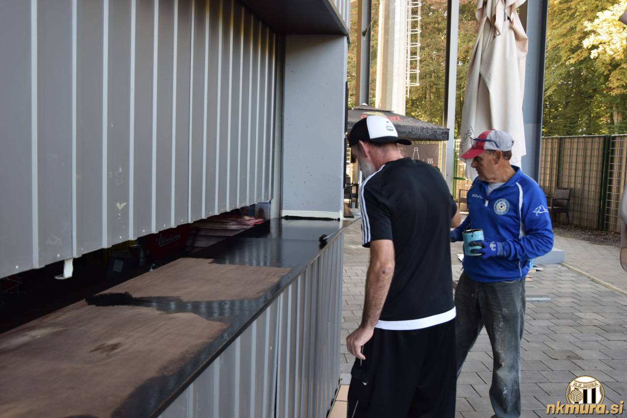 Jaro se je barvanja lotil v Murinem dresu iz leta 2018. Ponosno nam pokaže, da je poln lukenj. Pa ne zato, da bi bil slabe kvalitete, ampak kot sam pravi je to posledica nečesa drugega. "Poglej te luknje," mi pravi. "To je od prižiganja bakel." Sicer pa nam vedno zgovorni Jaro razlaga ideje kako bi on uredil šank. "Poglej tu nad šankom bi morali dati velike plakate murašev. Recimo tisto fotografijo, ko smo osvojili naslov prvaka." Na koncu se vsi strinjamo, da bi si na tem mestu fotografije zaslužile tudi Murine legende - Feri Maučec, Milan Koblencer in ostali, ki so prispevali svoj košček k Murini zgodovini.