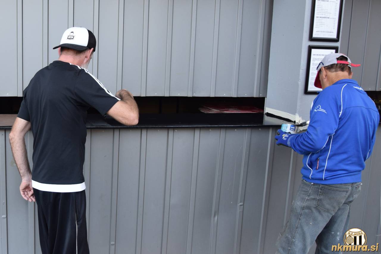 Na Fazaneriji lahko v delovnih oblekah občasno srečamo Milana Maligca in Zlatana Cerića, bolj znanega kot Jaro. Danes sta vzela v roke čopič in valj ter se lotila barvanja pulta na šanku. Tako kot se spodobi sta ga "oblekla" v črno barvo, obljubljata pa, da bo zadeva do nedeljske tekme suha, in da se bomo lahko brez skrbi na osvežen šank naslonili in nanj položili svojo najljubšo pijačo.