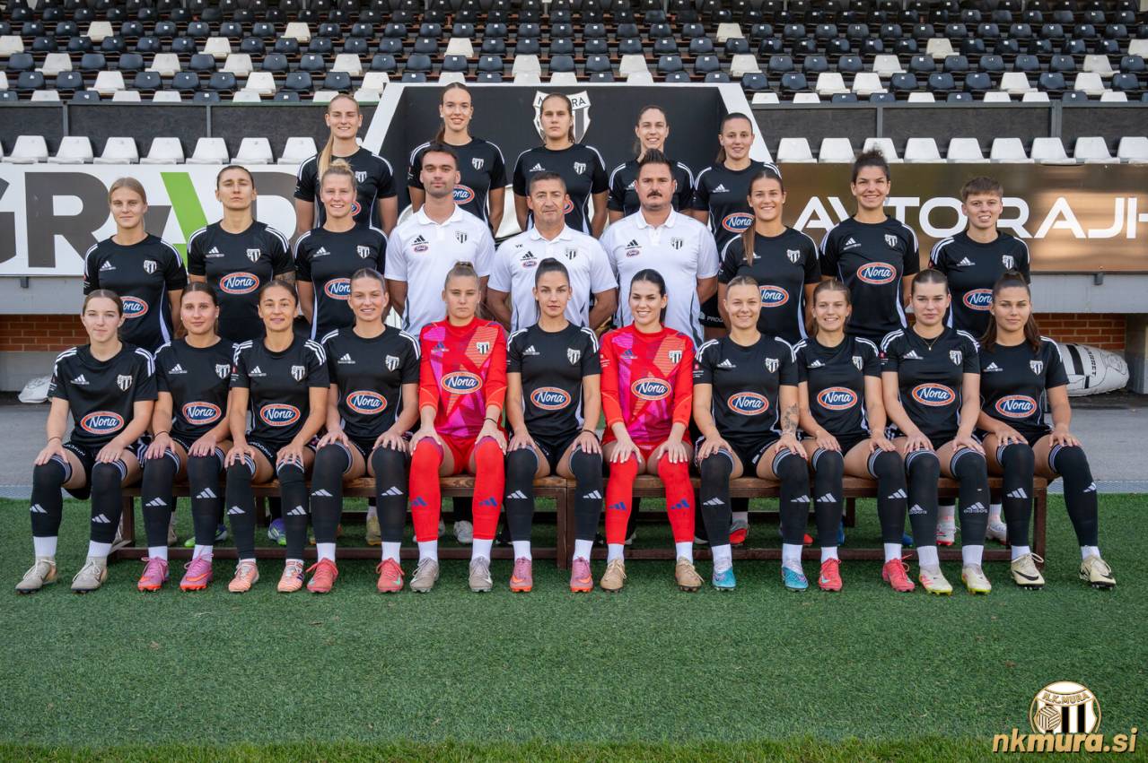 Ženska ekipa jeseni 2025. Zgornja vrsta: Zala Omerza, Hana Serec, Asja Cvetkovič, Joanna Olszewska, Elena Paneska. Srednja vrsta: Lea Dolinar, Darya Kravets, Zala Vindišar, Domen Kotnjek (pomnočnik trenerja), Vladimir Kokol (trener), Damjan Vuzem (trener vratark), Ana Milović, Evelina Kos, Ema Horvat. Spodnja vrsta: Lana Kavaš, Tija Šoštarič Karič, Yana Malakhova, Neža Hrga, Teja Truntič, Lucija Kos, Sara Nemet, Noelle Vilčnik, Živa Rakovec, Gala Dasovič Ravnik in Lana Jakšič. Manjka: Špela Kolbl. Avtorske pravice: nkmura.si Foto: Boštjan Rous