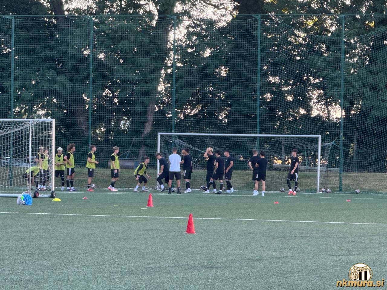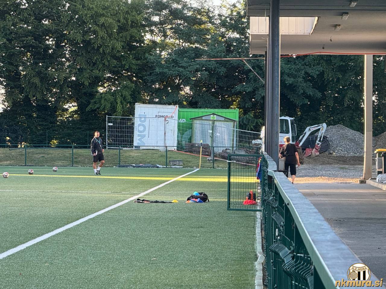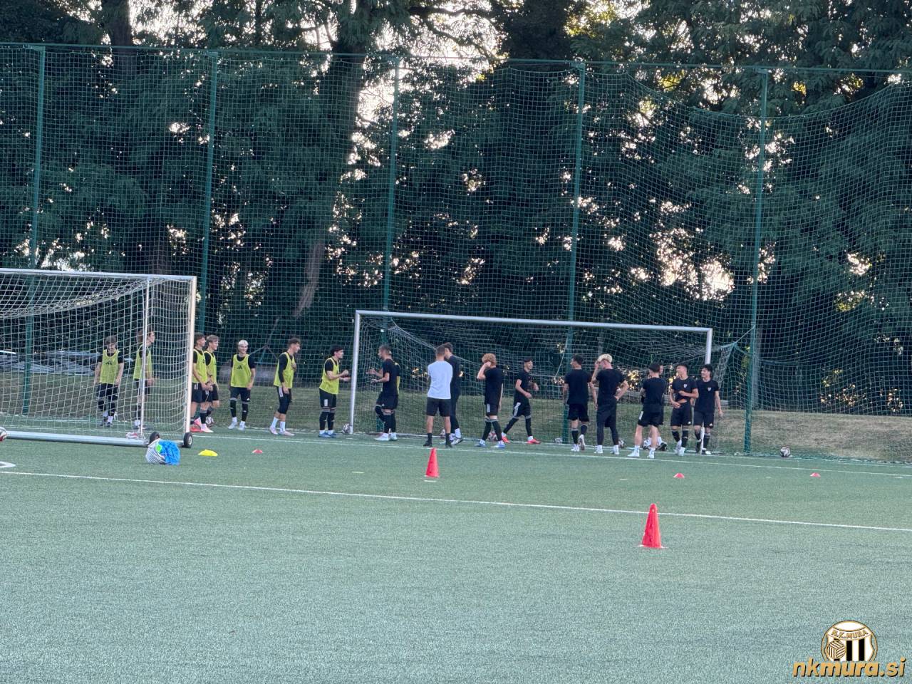 Dostop do igrišča z umetno travo je onemogočen, saj so zaradi gradbenih del na stadionu zaklenjena vsa vrata ob umetnem igrišču. Nogometaši do slačilnic in površin za trening dostopajo skozi tunel glavnega igrišča. Kljub temu to ni ustavilo najzvestejše navijačice Terezije Knaus - Trejze, ki je prišla pozdravit mlade muraše in jim namenila nekaj spodbudnih besed. Trening je vodil dosedanji pomočnik trenerja Roman Gostan, na treningu je bil prisoten tudi kondicijski trener Matej Virag.