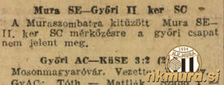 II. kerület iz Györa je vodstvo Mure obvestil, da ga zaradi težav z organizacijo prevoza ne bo na tekmo v Mursko Soboto. Tekma je zato prestavljena za nedoločen čas oz. bo o njenem statusu odločalo vodstvo tekmovanja. V vojnem času imejo klubi velike težave s prihodom na prizorišče tekem.