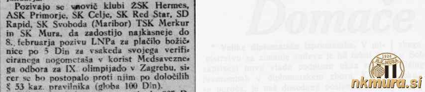 Vsak klub, tudi Mura, mora do 8. februarja 1927 plačati 5 dinarjev za vsakega registriranega nogometaša. V primeru, da Mura tega ne stori, jo čaka globa v višini 100 dinarjev.