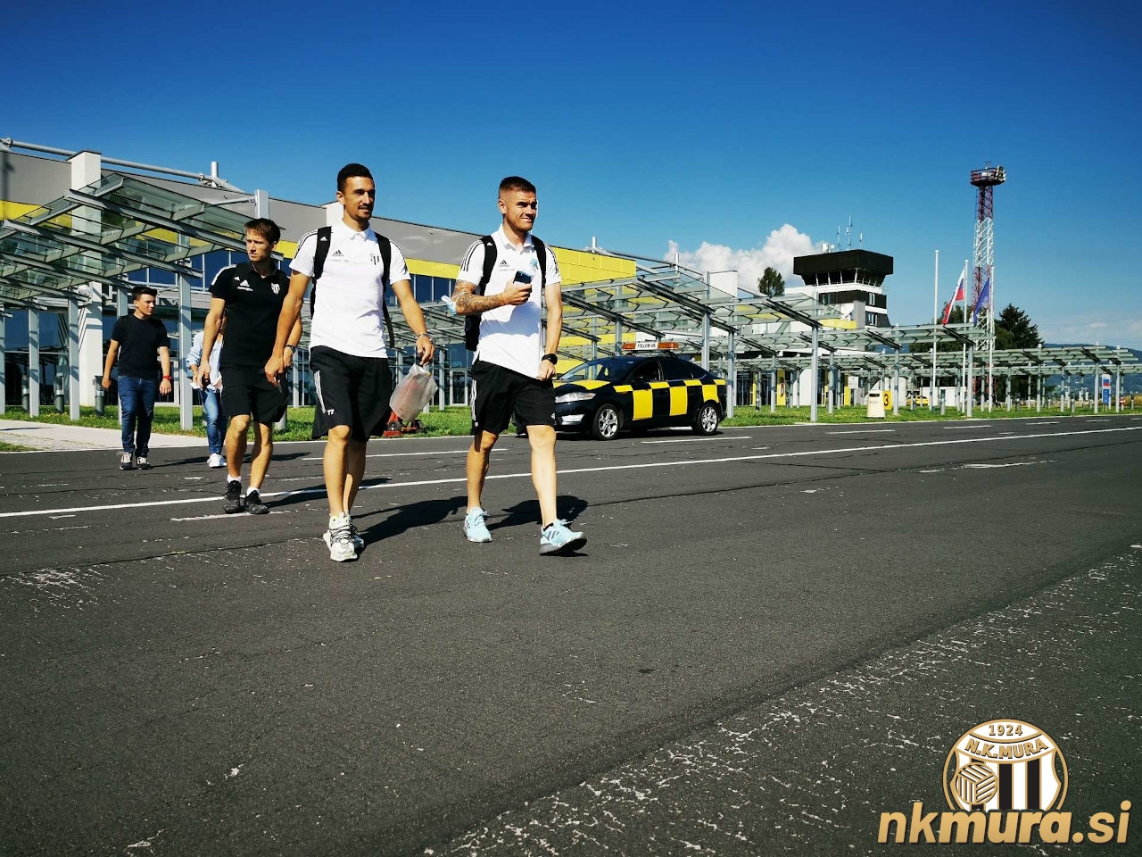 Nogometaši Mure so v Vilno poleteli z letališča Maribor. Avtorske pravice: nkmura.si Foto: Aleš Cipot/fotolens.si