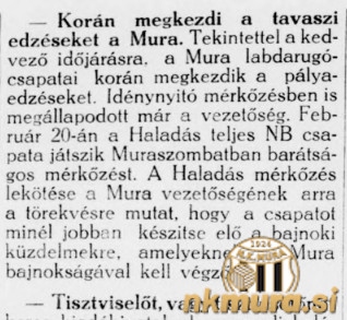 Otvoritvena tekma je planirana za 20. februar 1944, ko bo v prijateljskem obračunu v Murski Soboti gostovala ekipa Haladasa v kateri igra nekdanji igralec Mure Jože Gerenčer.