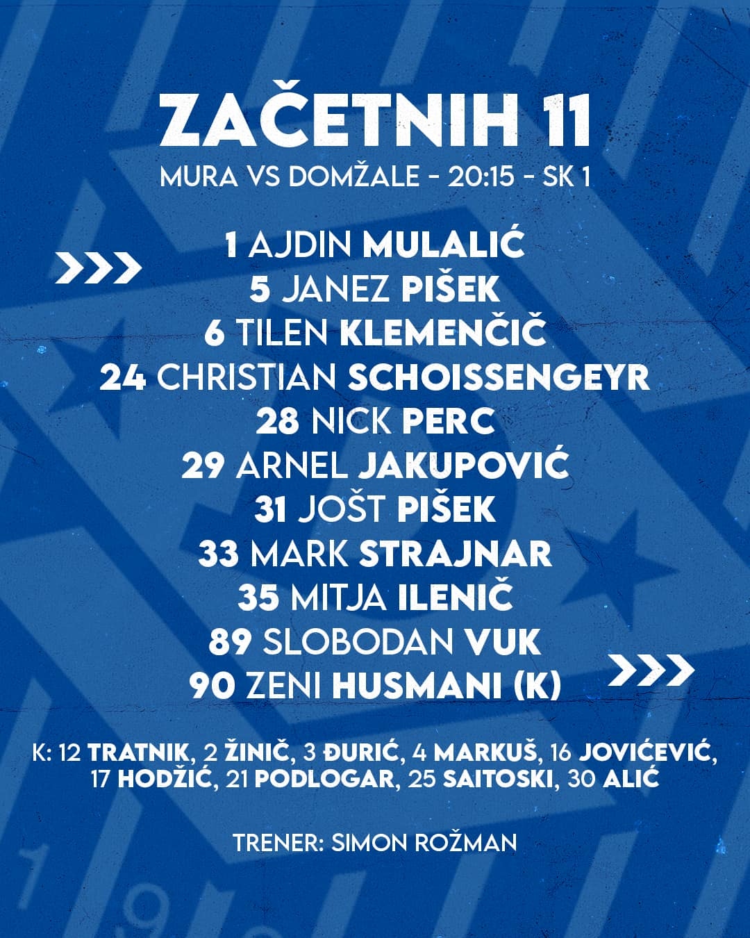 Domžale: Mulalić, Ja. Pišek, Klemenčič, Schoissengeyr, Perc (od 64. Alić), Jakupović, Jo. Pišek (od 65. Markuš), Strajnar (od 80. Podlogar), Ilenič, Vuk (od 80. Žinič), Husmani. Trener: Simon Rožman.