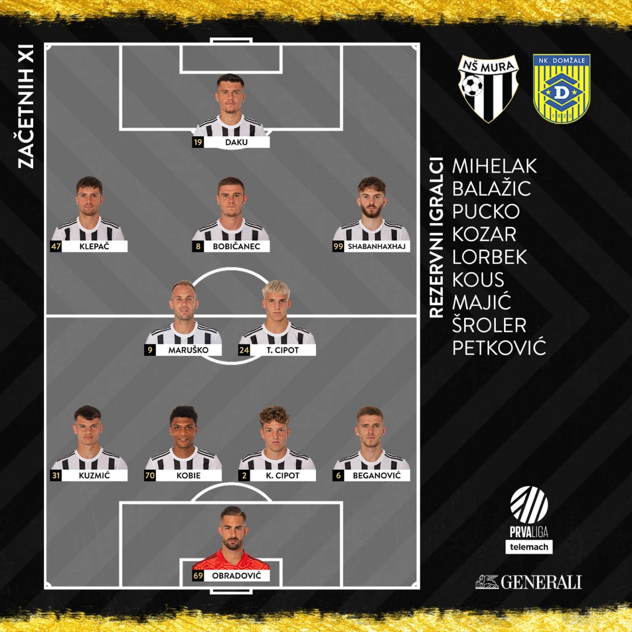 Mura: Obradović, K. Cipot, Beganović, Bobičanec, Maruško (od 83. Lorbek), Daku, T. Cipot (od 59. Petković), Kuzmić (od 83. Pucko), Klepač (od 80. Majić), Morris, Shabanhaxhaj (od 59. Kous). Trener: Damir Čontala.