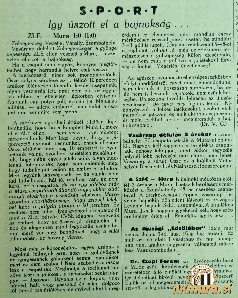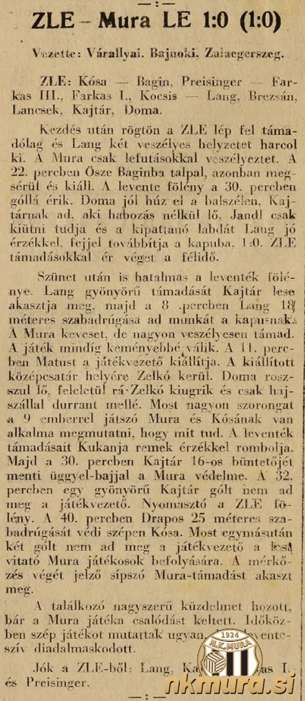 Nogometaši Mure so nekoliko nepričakovano, vendar povsem zasluženo ostali praznih rok ga gostovanju v Zalaegerszegu. Z 1:0 je bil boljši Zalaegerszegi LE (ZLE), končni rezultat pa je bil dosežen že v prvem polčasu.