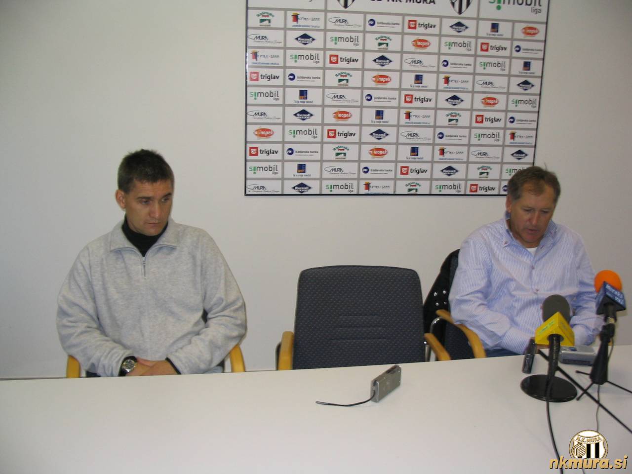 Novinarska konferenca po tekmi. Levo je trener Publikuma Marijan Pušnik, desno pa Mure Milan Miklavič. Avtorske pravice: nkmura.si Foto: Simon Horvat