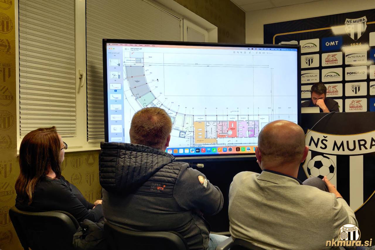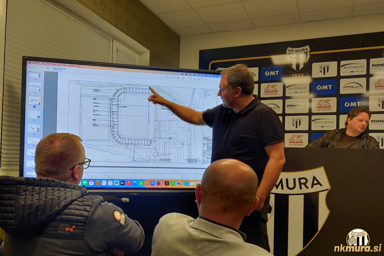 Župan Mestne občine Murska Sobota je članom NŠ Mura predstavil podrobnosti o novi tribuni. Avtorske pravice: nkmura.si Foto: Simon Horvat