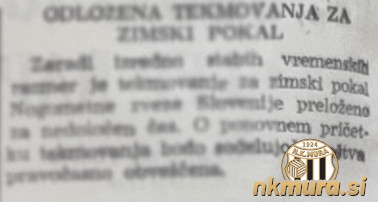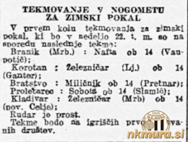 Tako kot prejšnje leto je tudi letos Nogometna zveza Slovenije pripravila zimski pokal. Za tekmovanje se je prijavilo 11 ekip, 1. krog pa bi moral biti na sporedu 22. januarja 1950, vendar je bil zaradi neugodnih vremenski razmer preložen za nedoločen čas. Sobota bi morala gostovati v Zagorju in se pomeriti s Proletarcem.