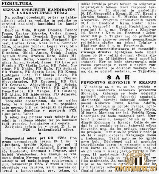 27. 4. 1947: Kranj : Murska Sobota
