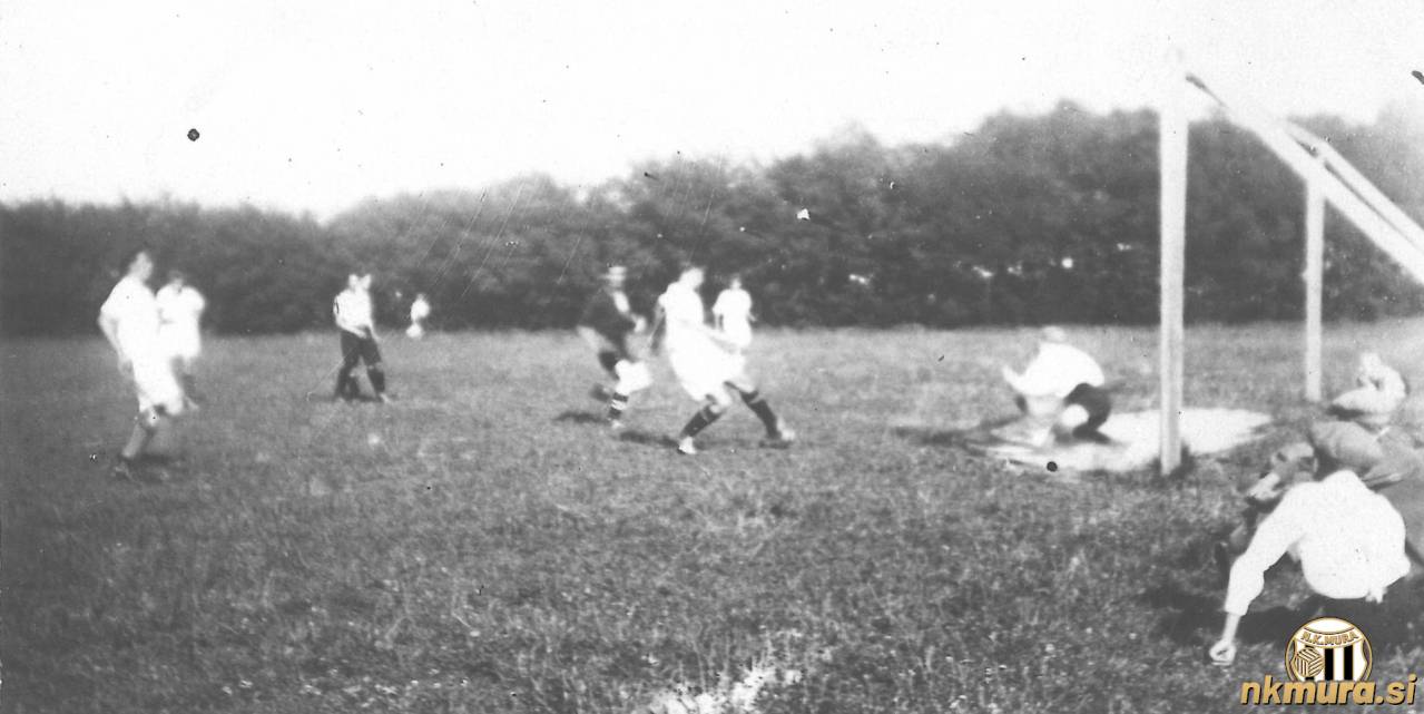 Utrinek s tekme med Muro Ljutomerom, ki je bila odigrana na soboškem sejmišču 15. avgusta 1928. Avtorske pravice: nkmura.si Foto: arhiv NK Mura skozi čas