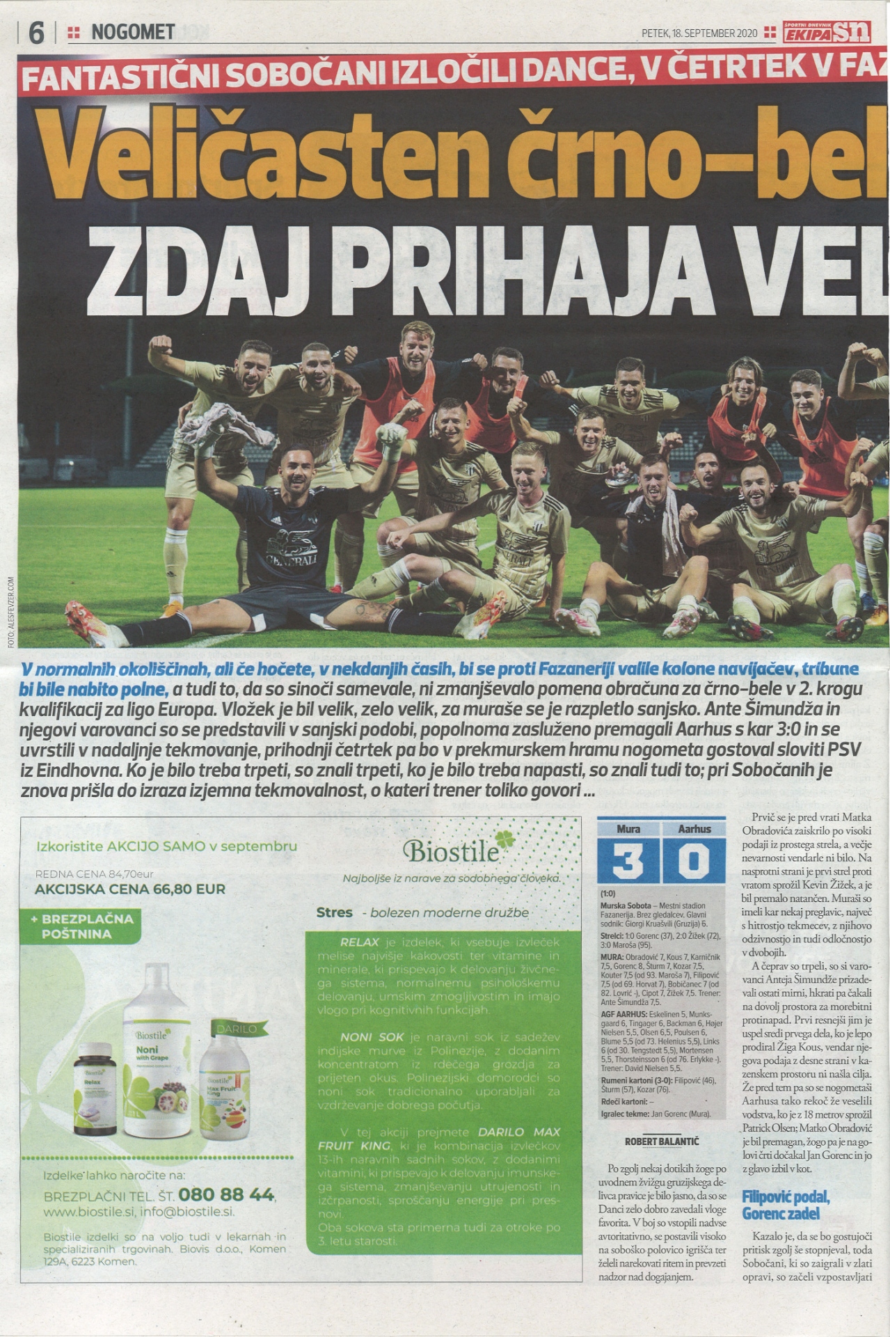 Potem ko je Mura v prvem kvalifikacijskem krogu zanesljivo odpravila Nomme Kalju, je tokrat gostila uglednejšega tekmeca, a svojo nalogo znova dobro opravila. Danskega predstavnika je izločila, potem ko je v vsakem polčasu dosegla po zadetek ter enega povsem ob koncu obračuna. Za nagrado je dobila nastop v tretjem krogu, v katerem bo prihodnji teden gostila sloviti PSV iz Eindhovna, 24-kratnega nizozemskega prvaka ter po enkrat zmagovalca lige prvakov in pokala UEFA.