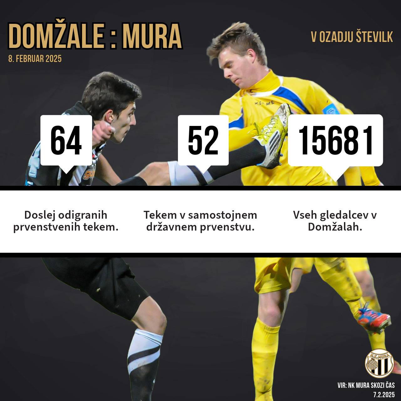 Tri številke - tri zanimivosti pred 65. prvenstvenim obračunom Mure in Domžal. Avtorske pravice: nkmura.si Foto: NK Mura skozi čas