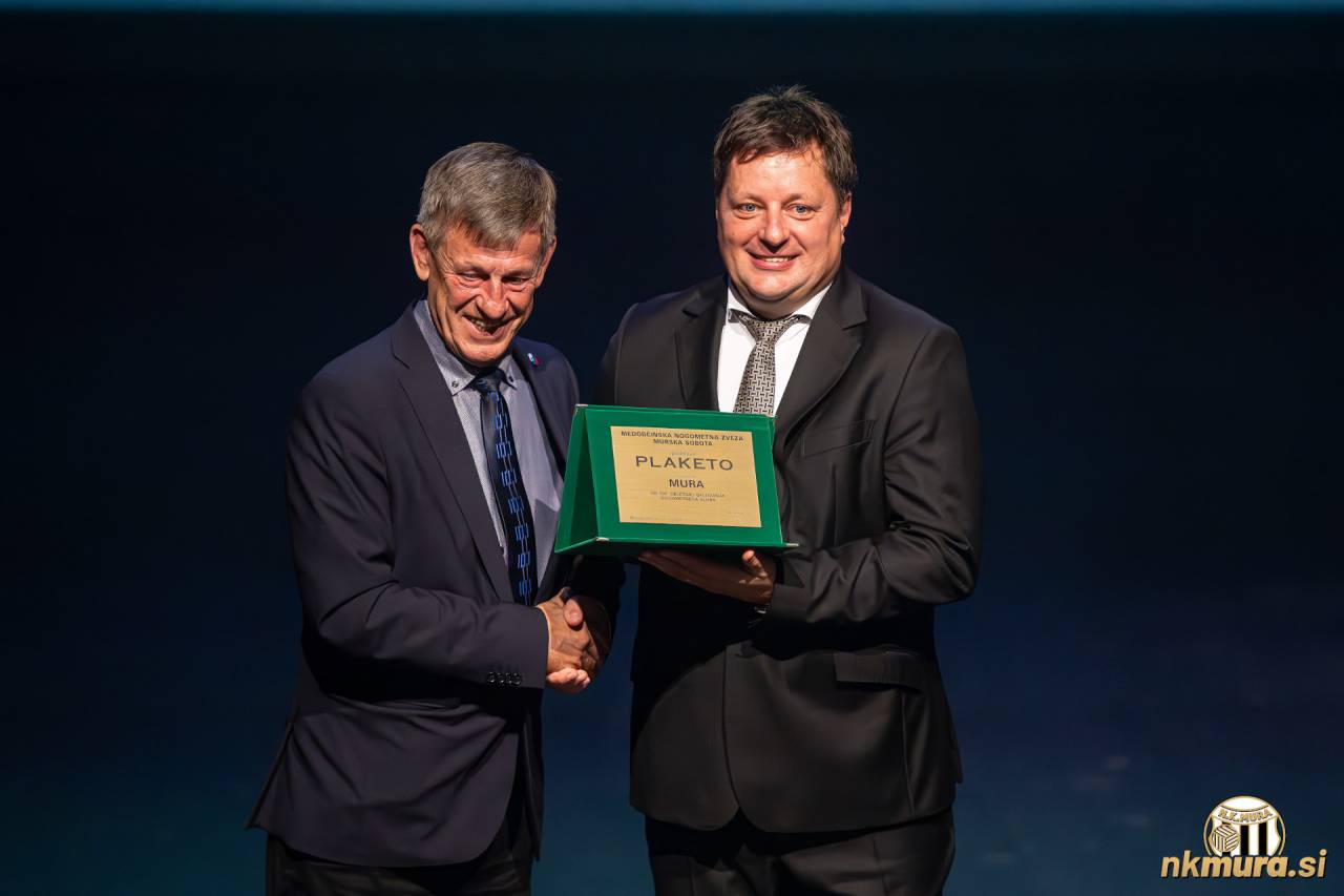 Predsednik NZS Radenko Mijatović je klubu podelil plaketo. Avtorske pravice: nkmura.si Foto: Loris Cipot/fotolens.si