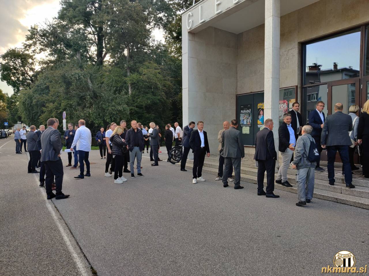 Živahno je bilo že pred pričetkom, ko so zbrani pred vhodom gledališča pričeli z obujanjem spominov na svoja igralska in funkcionarska leta. Prišlo je tudi kompletno strokovno vodstvo članske ekipe in igralci, ki so bili oblečeni v enotne bele majice in črne hlače.
