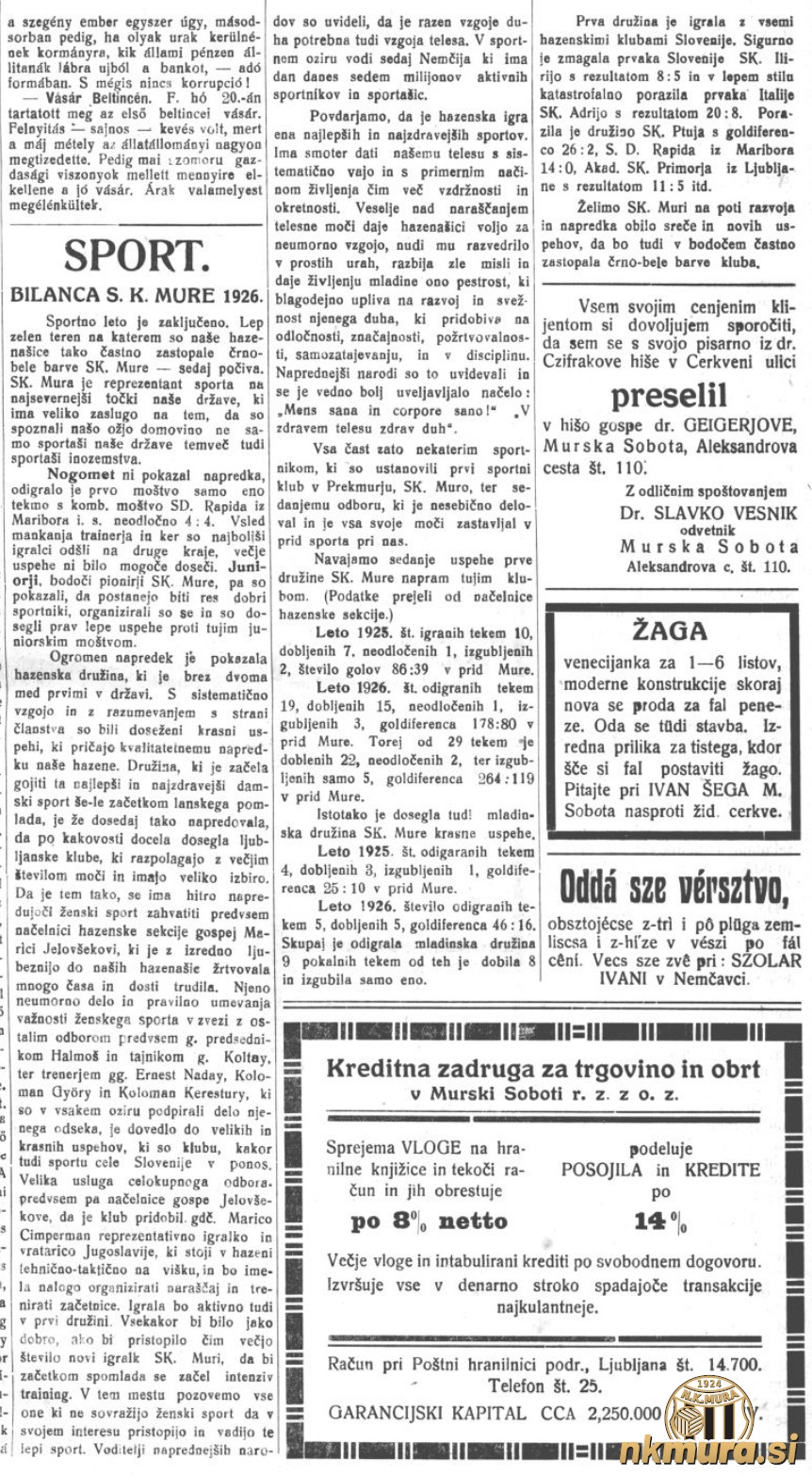 Bilanca Mure v letu 1926. Avtorske pravice: nkmura.si Foto: Tabor, 2. februar 1927