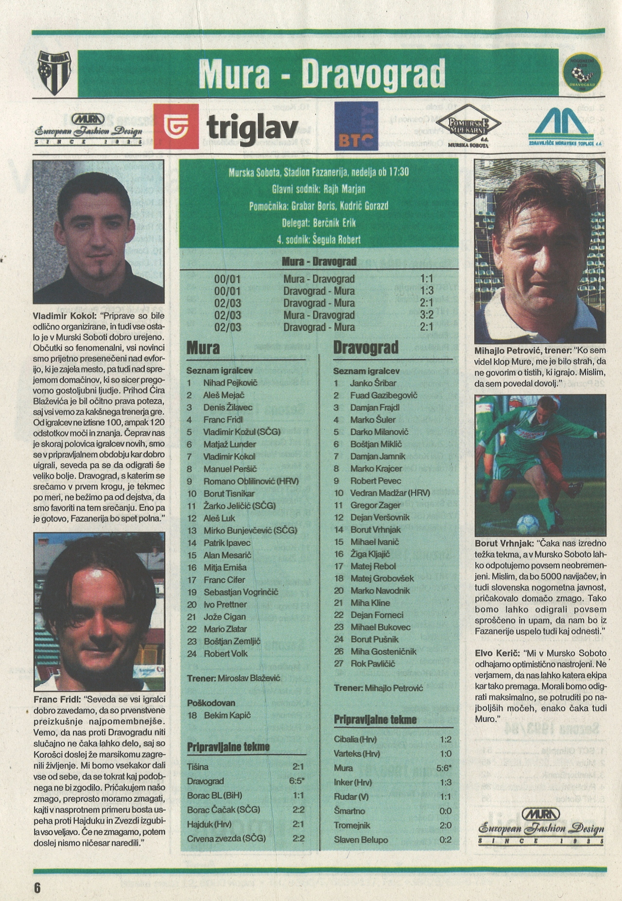 V nedeljo bo na sporedu prvi krog državnega prvenstva v sezoni 2003/2004. Na Fazaneriji bo gostoval Dravograd in to bo tudi tekma na kateri bo svoj debi na trenerski klopi Mure doživel Miroslav Blažević.