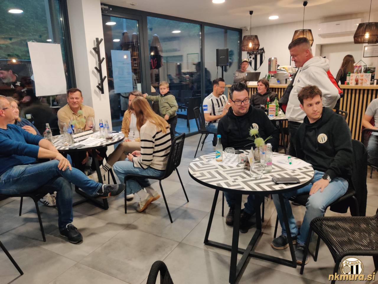 V klubskem baru na Fazaneriji je Mura pripravila čarno-bejli kviz. Klubski dogodek je bil solidno obiskan. Zraven kviza niso manjkali niti glasba, smeh in druženje. Popestrili so ga tudi muraši, ki so se po treningu ustavili v baru in poklepetali z navijači. Predstavil se je tudi novi trener 40-letni Ivan Kurtušić.