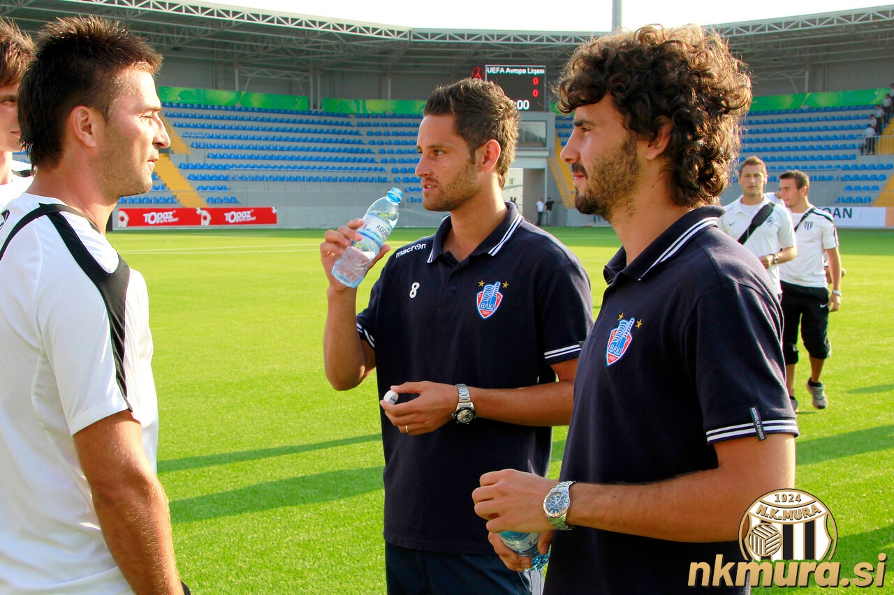 Obe ekipi sta si že ogledali igrišče, naši nogometaši pa bodo danes nastopili v rdečih dresih, saj bodo domačini igrali v svoji tradicionalni belo modri opremi. Glavni sodnik tekme namreč ni dovolil, da bi Mura tekmo igrala v črno-belih dresih. To pa so bili tudi edini dresi, ki so jih prinesli v Baku.