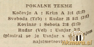 Nogometaši Sobote so odigrali tretjo tekmo predtekmovanja na podzveznem nivoju za pokal maršala Tita. V Mariboru so z 2:6 (1:3) premagali Kovinar.