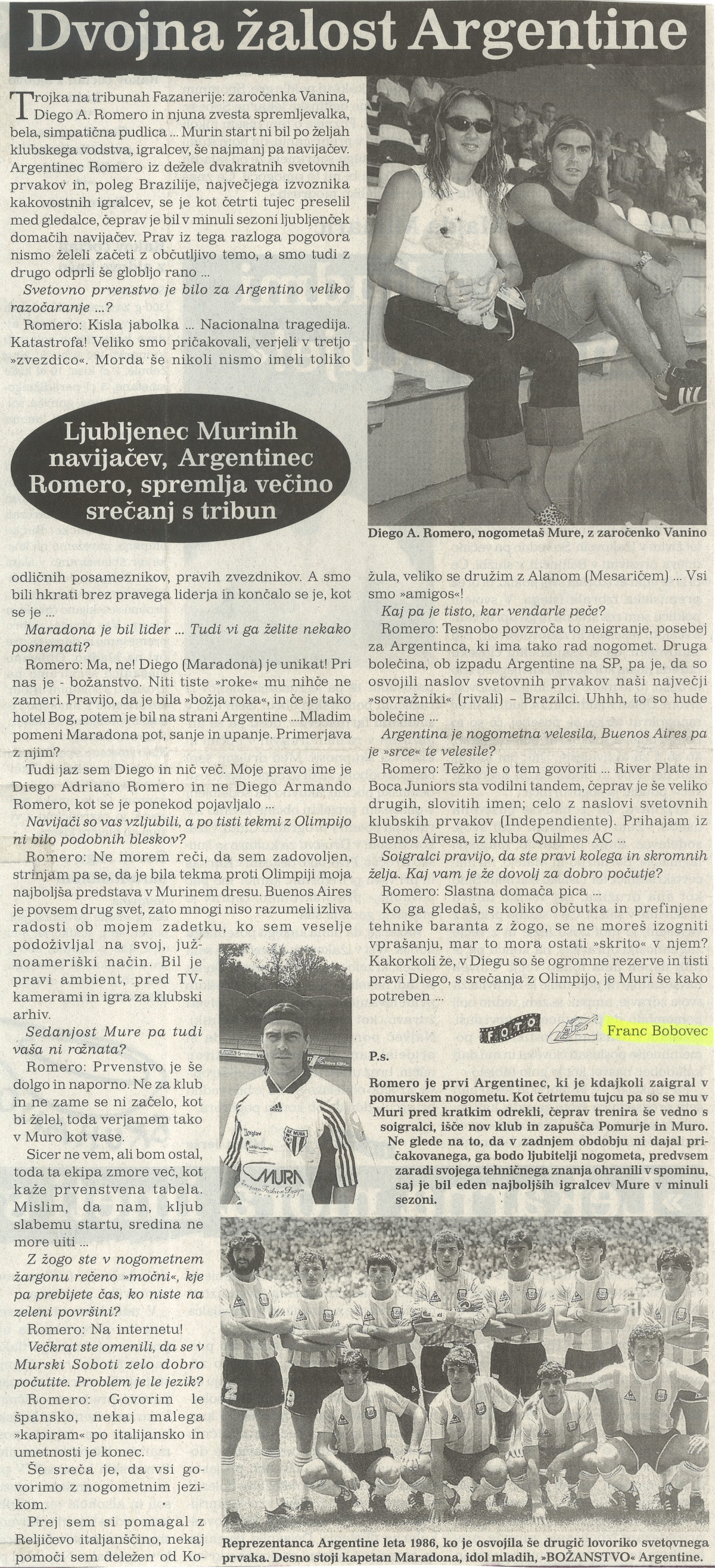 Iz arhiva smo izbrskali intervju z Romerom, ki ga je julija 2002 za PEN opravil Franc Bobovec. V njem se je Diego dotaknil Mure, Argentine in seveda Diega Maradone.