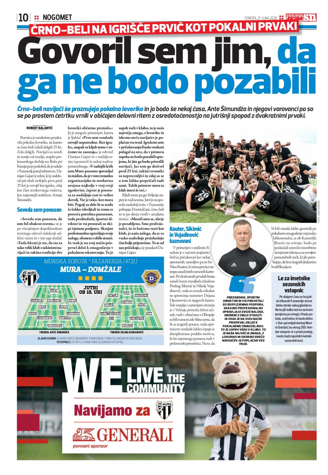 Po pokalnem slavju so vse misli usmerjene na naslednjo prvenstveno tekmo, ko na Fazanerijo prihahajo Domžale. Pri Muri bo zaradi kartonov manjkal Kouter, pri Domžalah pa Sikimić in Vujadinovič.