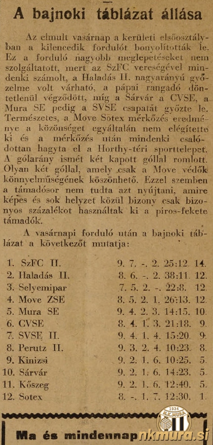 V naslednjem krogu bo Mura v nedeljo, 8. novembra 1942 ob 14.00, na Fazaneriji gostila drugo ekipo Haladasa. Za ekipo iz Sombotela igra kar nekaj igralcev z izkušnjami iz 1. madžarske lige, kot npr. Szabados, Újvári, Beraxa, Mórocz, Koroknai, Lipovics in Büki. Kljub vsemu bodo Muraši dali vse od sebe, da dosežejo peto zaporedno zmago.