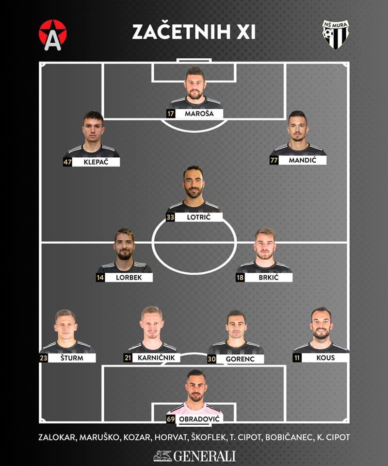 Mura: Obradović, Šturm, Karničnik, Gorenc, Kous, Lorbek, Brkić (od 46. Horvat), Lotrič, Klepač (od 79. Bobičanec), Mandić (od 68. Škoflek), Maroša. Trener: Ante Šimundža.