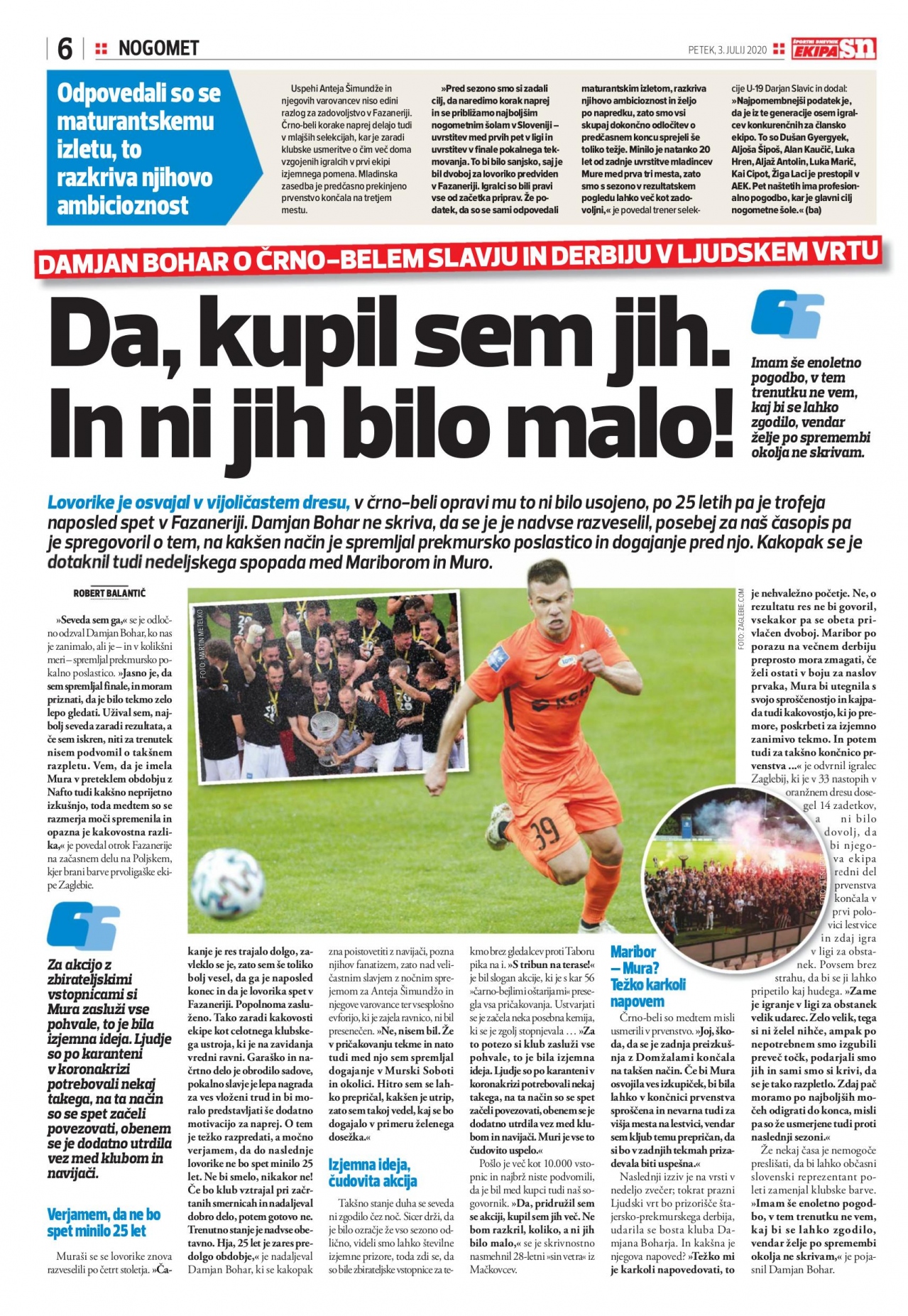 Damjan Bohar za ekipo govril o slavju Mure v pokalu Slovenije, o akciji Mi smo Mura in o prihajajoči tekmi Mure proti Mariboru (Maribor : Mura 5. julij 2020).