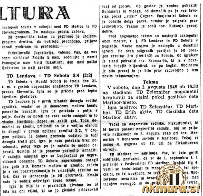 Po suspenzu, ki je ob koncu prvenstva v prejšnji sezoni doletel Soboto, so nogometaši po skoraj treh mesecih znova stopili na igrišče. V Murski Soboti so gostili enajsterico Lendave, ki v letošnji sezoni nastopa v prvi državni ligi. Zmagali so Lendavčani s 4:5, polčas pa se je končal z 2:2.