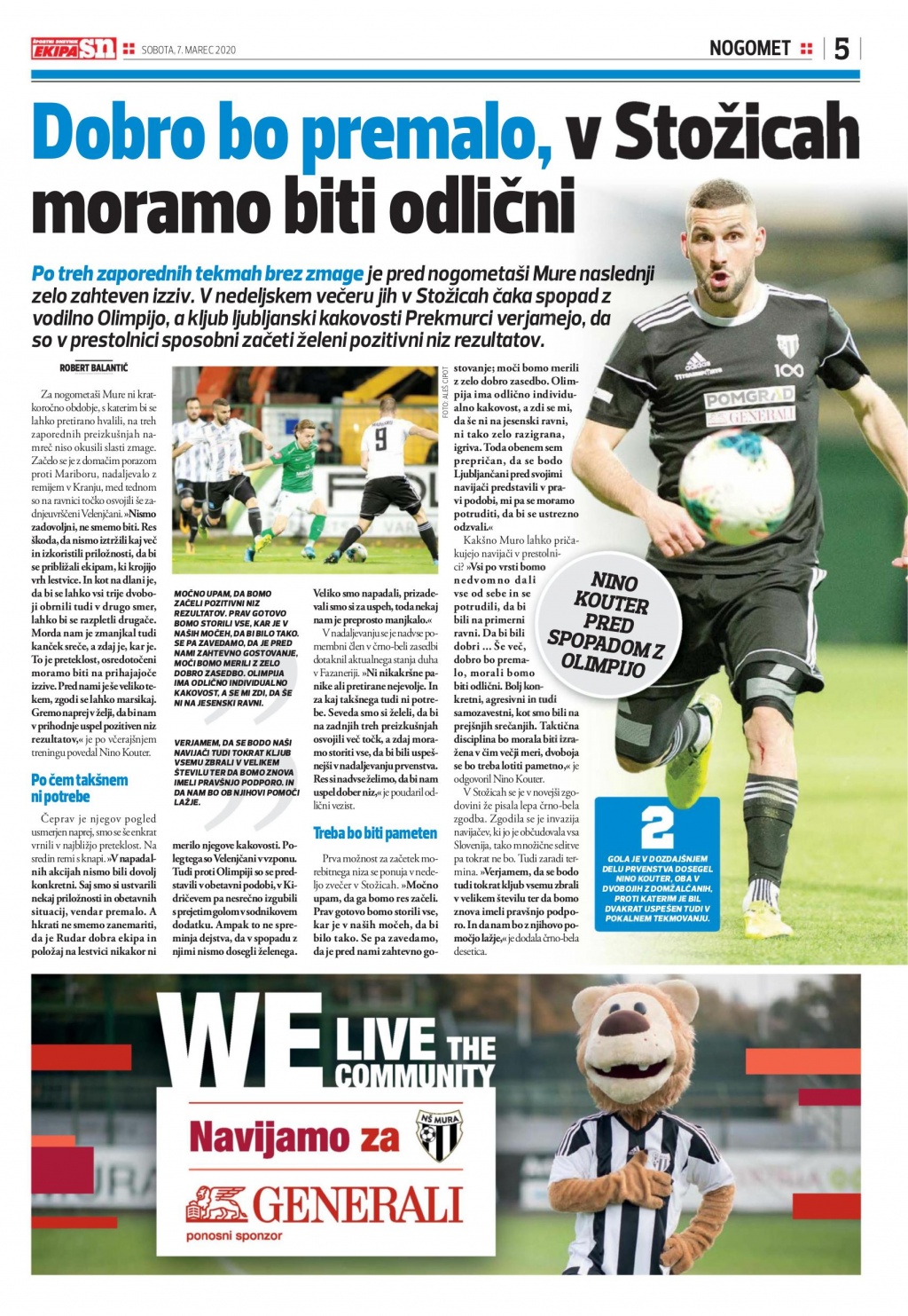 Pred tekmo z Olimpijo (8.3.2020) je za časnik EkipaSN spregovoril Nino Kouter.