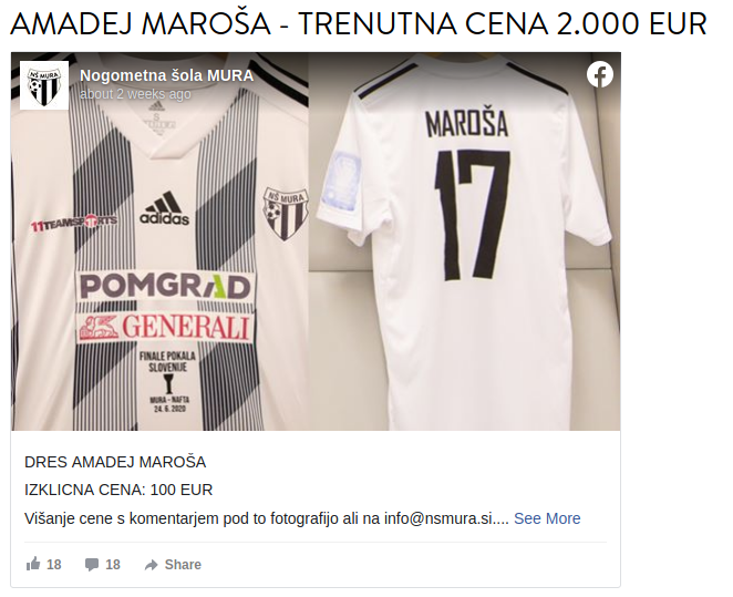 Najvišjo ceno je dosegel dres Amadeja Maroše, 2000 evrov. Foto: nsmura.si
