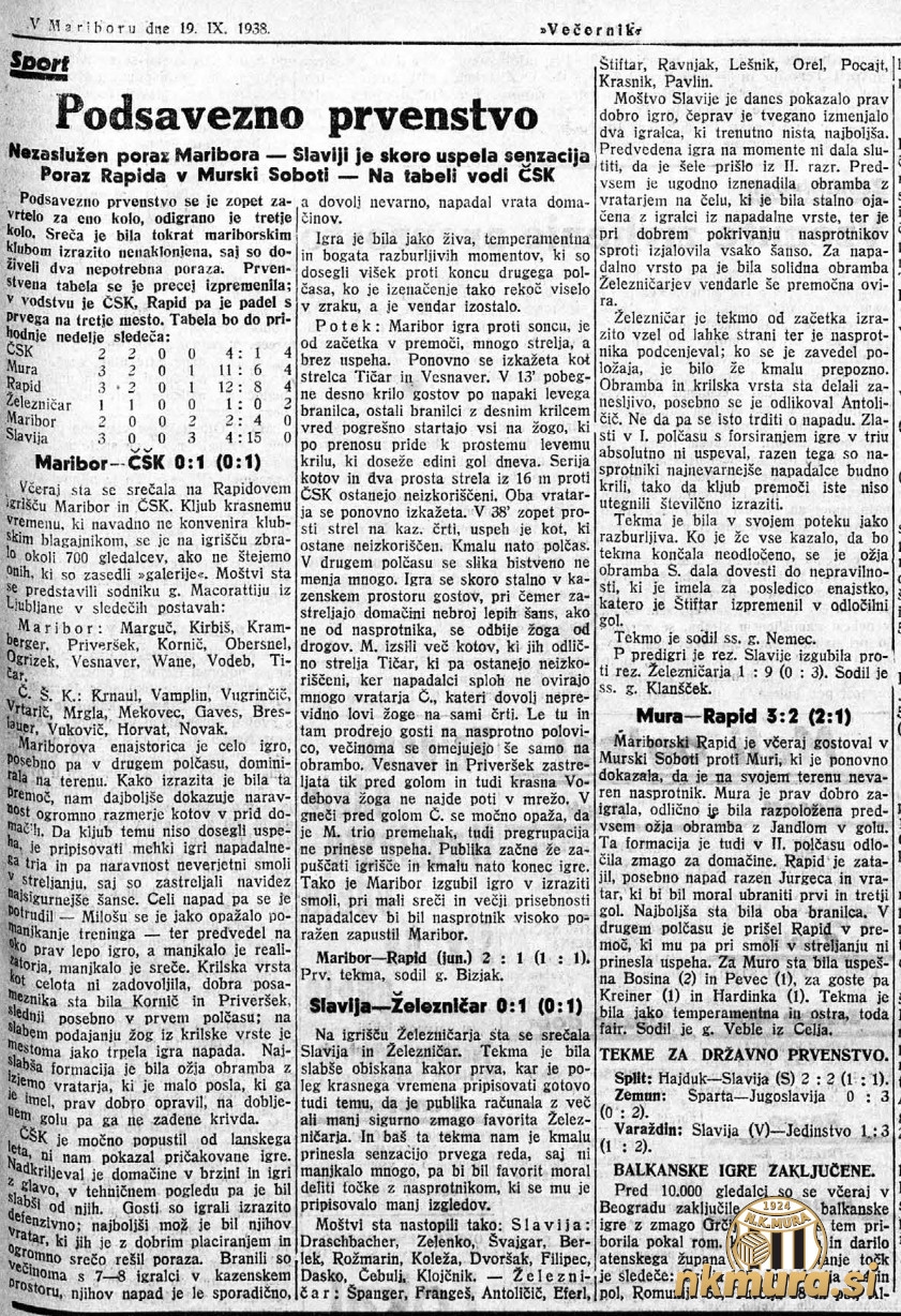 1. Čakovečki 2 2 0 0 4:1 4 2. Mura 3 2 0 1 11:6 4 3. Rapid 3 2 0 1 12:8 4 4. Železničar 1 1 0 0 1:0 2 5. Maribor 2 0 0 2 2:4 0 6. Slavija 3 0 0 3 4:15 0