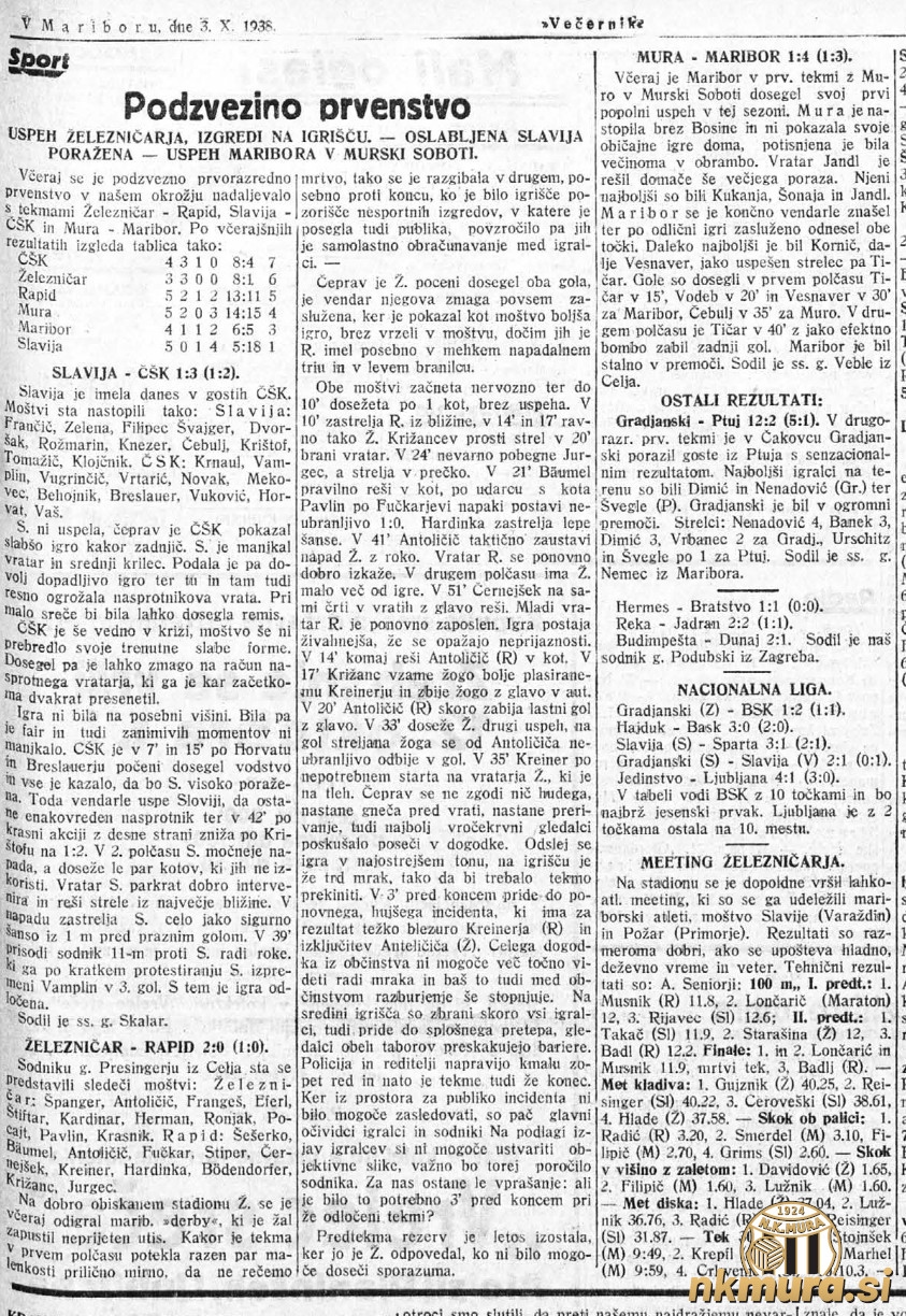 1. Čakovečki 4 3 1 0 8:4 7 2. Železničar 3 3 0 0 8:1 6 3. Rapid 5 2 1 2 13:11 5 4. Mura 5 2 0 3 14:15 4 5. Maribor 4 1 1 2 6:5 3 6. Slavija 3 0 1 4 5:18 1