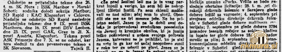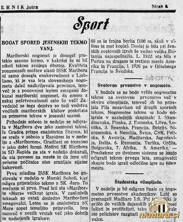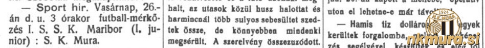 Tekmo med Muro in Mariborom so zaznamovali incidenti. Avtorske pravice: nkmura.si Foto: Mariborski večernik Jutra, 27. avgust 1928