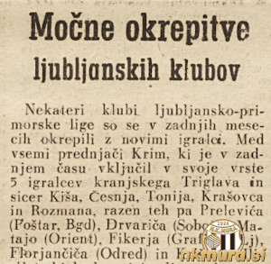 Po poročanju časopisa Polet Alojz Drvarič zapušča Soboto in odhaja v ljubljanski Krim, ki igra v ljubljansko-primorski ligi.
