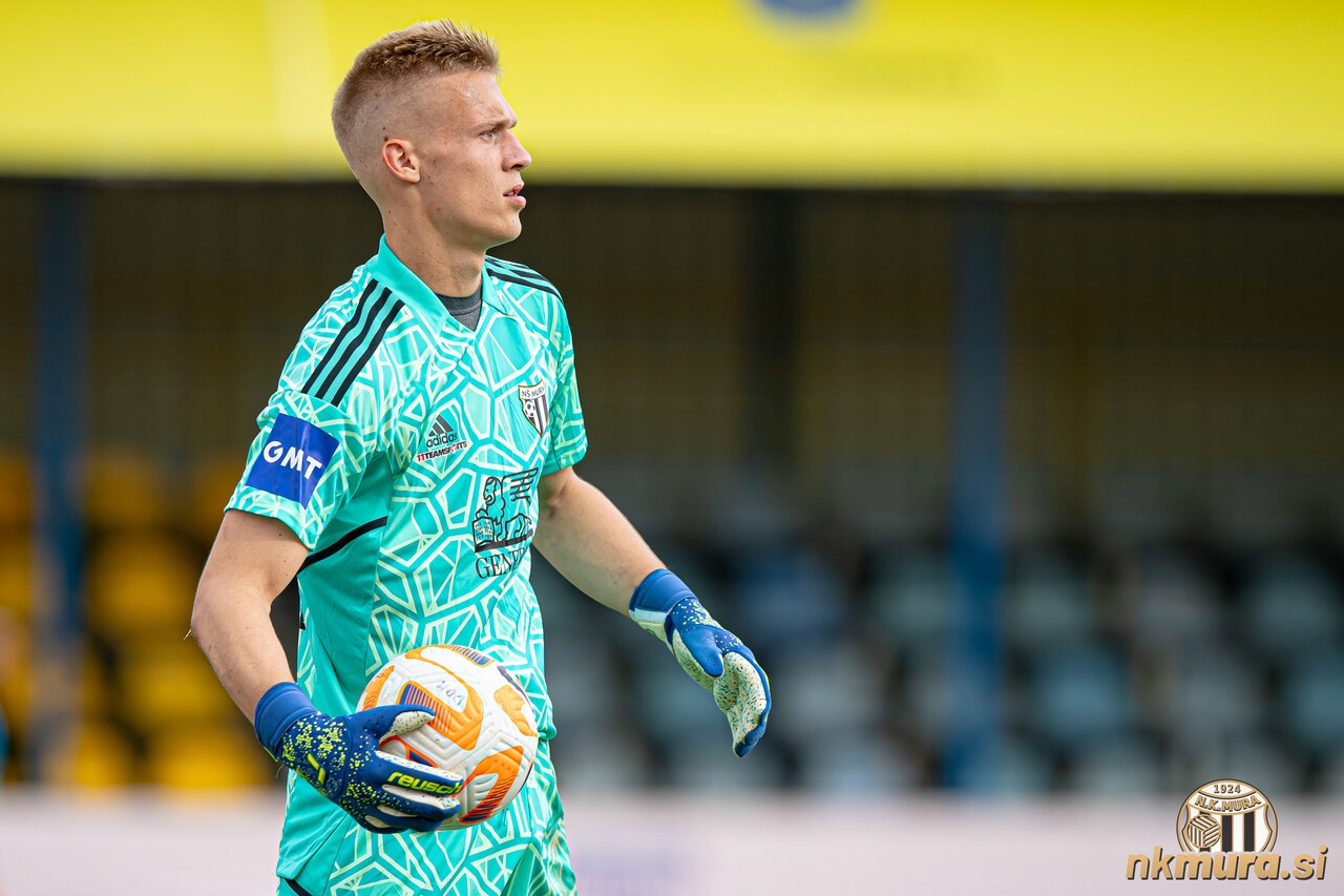 Klemen Mihelak je v dresu Mure debitiral na svojem "domačem" terenu. Pred začetkom sezone se je k Muri preselil iz Domžal. Avtorske pravice: nkmura.si Foto: Aleš Cipot/fotolens.si