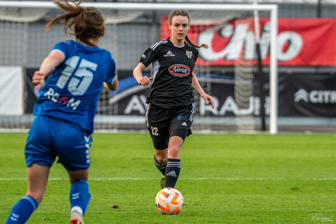 Uvodne minute so se dogajale med obema kazenskima prostoroma, obe ekipi pa sta večinoma kombinirali na sredini igrišča. Prvo priložnost so imele murašice, potem ko je Živa Rakovec streljala mimo leve vratnice. V 25. minuti je gostujoča igralka obranila strel Kaje Korošec. V 35. minuti je iz prostega strela poizkušala Lucija Kos, vendar je gostujoča vratarka strel ubranila. V 35. minuti je po prekršku nad gostujočo igralko porumenela Lucija Kos. To je bil njeni četrti karton, kar pomeni, da bo na naslednji tekmi počivala. Prvi polčas se je končal z začetnih 0:0.