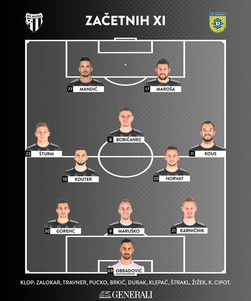 Mura: Obradović - Gorenc, Maruško, Karničnik - Šturm, Kouter, Bobičanec (od 85. Klepač), Horvat (od 77. Đurak), Kous - Mandić (od 81. Štrakl), Maroša (od 81. K. Cipot).