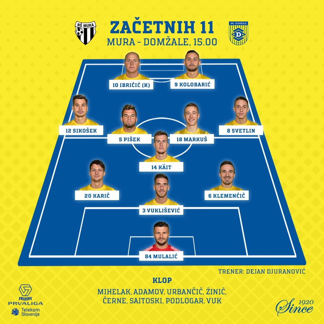Domžale: Mulalić, Šoštarič Karič, Vuklišević, Klemenčič (od 87. Černe), Käit, Sikošek, Pišek (od 58. Podlogar), Markuš, Svetlin (od 71. Vuk), Ibričić, Kolobarić.