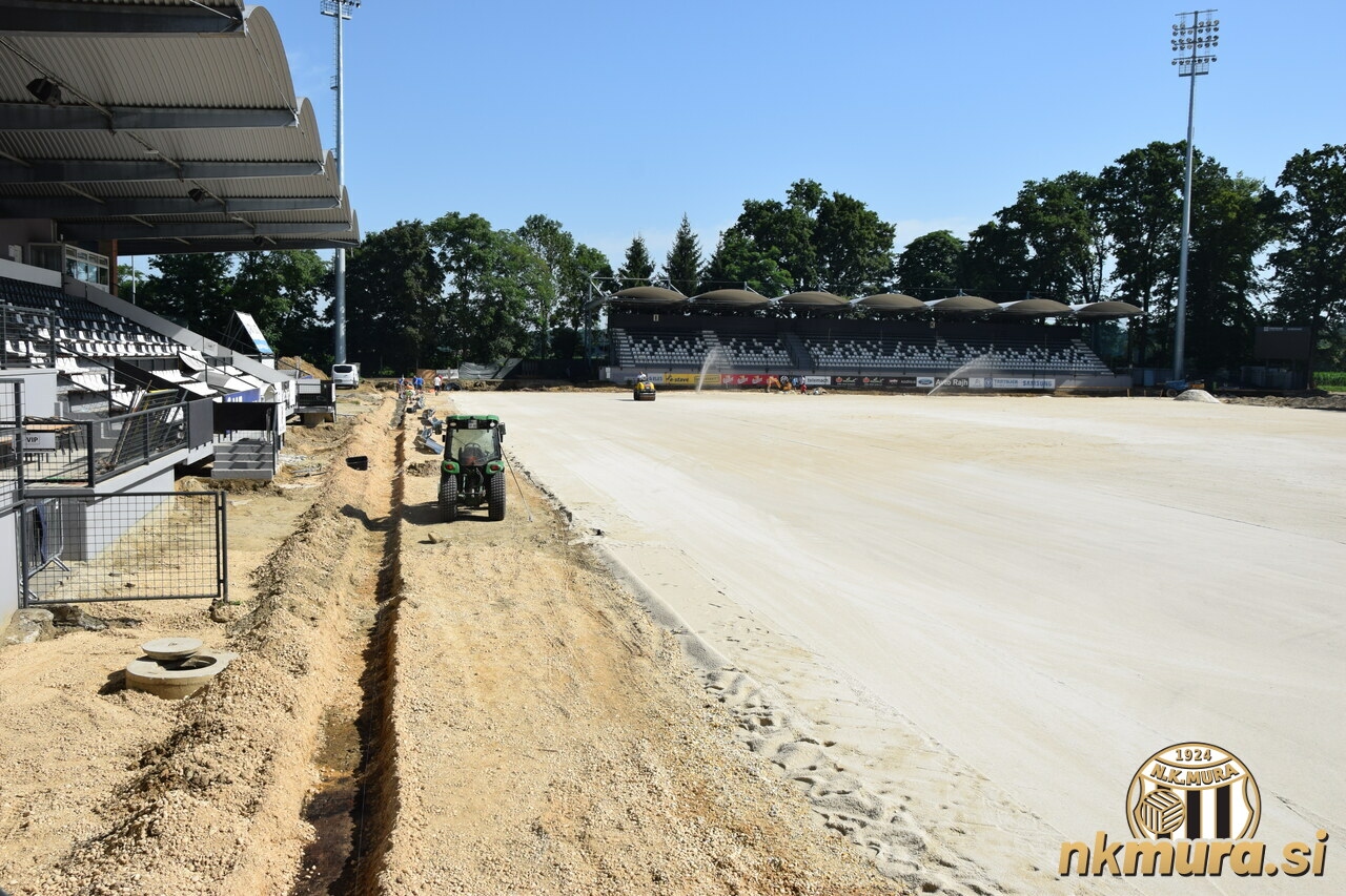 Jutri, v torek, bi naj pričeli s polaganjem travnate ruše, ki jo bodo s posebnimi tovornjaki s hladilniki pripeljali v balah. Ena bala bo dovolj za 1,2 krat 10 metrov oz. 12 m2. Za igrišče dimenzij 105x68 metrov bo potrebnih skoraj 600 bal. En kvadratni meter zelenice stane približno 15 evrov, kar za celotno igrišče znese 110.000 evrov. Rok za položitev zelenice je tri dni in če bo vse potekalo po načrtih bo zelenica nared v četrtek 30. junija t.j. natanko dva tedna pred prvo uradno tekmo na Fazaneriji. Takrat bo v 1. krogu kvalifikacij za evropsko konferenčno ligo v Murski Soboti gostoval moldavski Sfîntul Gheorghe.