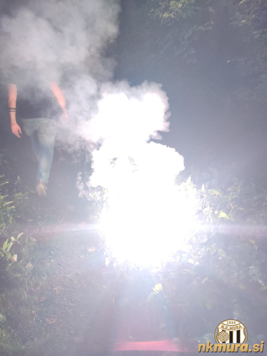 Po koncu tekme je ob odhodu s stadiona zagorela bakla. Avtorske pravice: nkmura.si Foto: Simon Horvat
