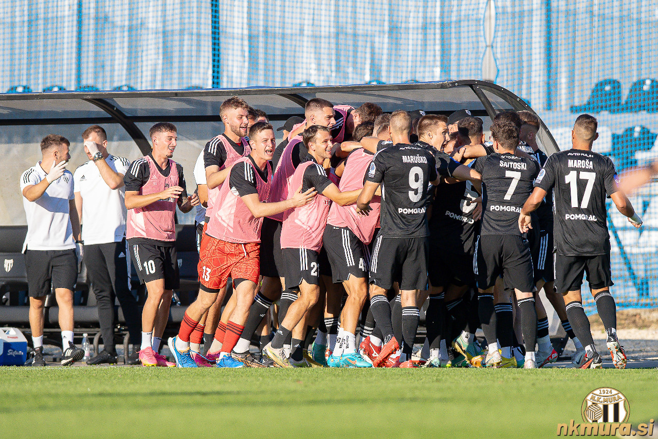 Po zadetku Jurišića so vsi stekli do klopi za rezervne igralce. Skočila je celotna klop in strokovni štab. Avtorske pravice: nkmura.si Foto: Loris Cipot/fotolens.si