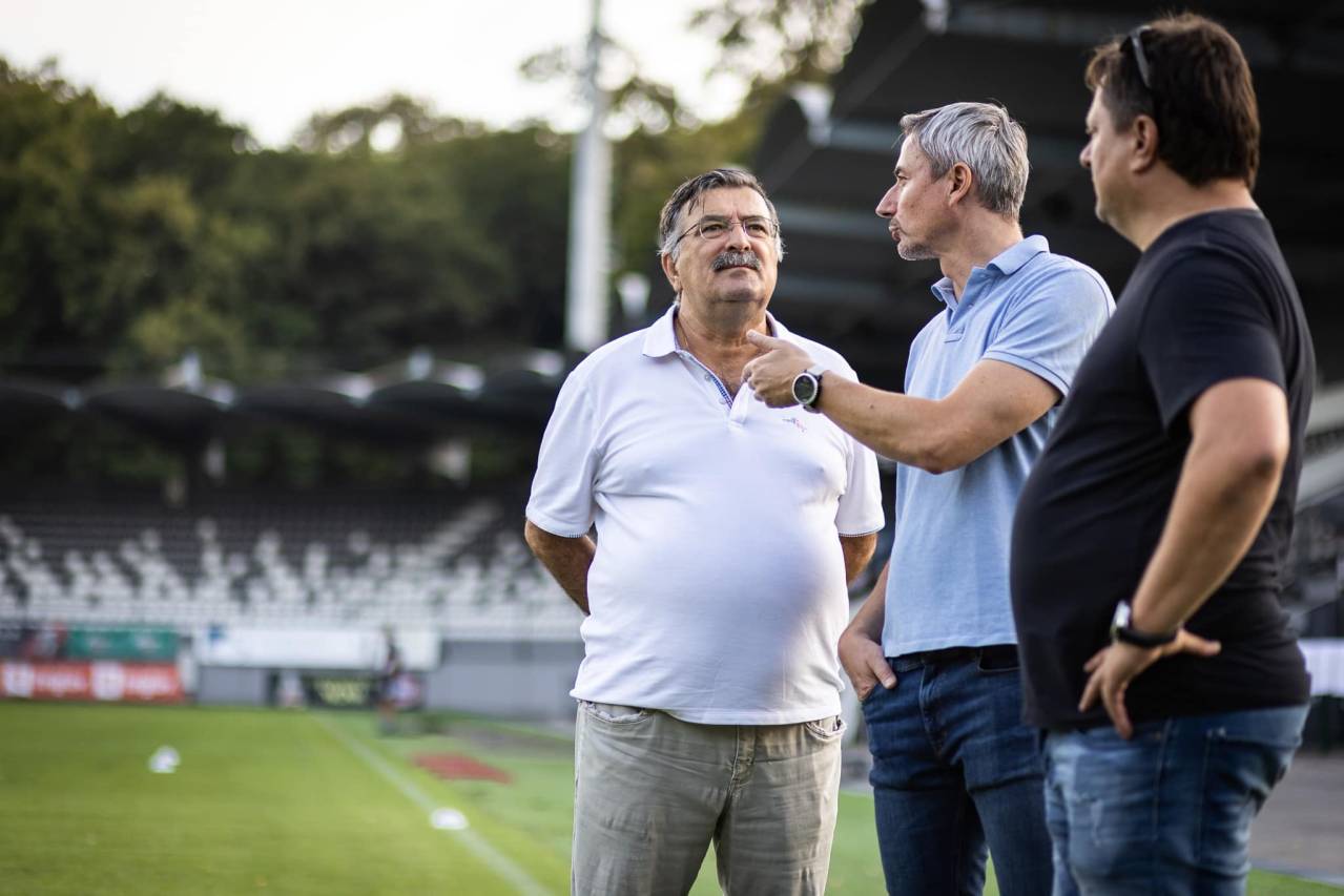 V poslovnih prostorih pod južno tribuno. George Juncaj, Robert Kuzmič in Aleš Kegelj. Foto: Niko Časar